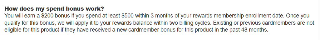 This means you cannot receive the signup bonus for this specific card if you’ve received it within the last 48 months or if you upgraded a different card to this card and earned a bonus.
